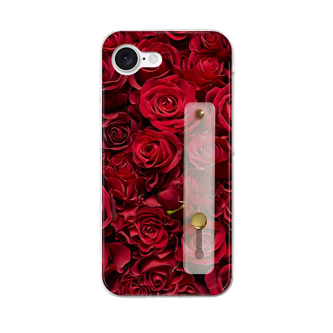 【送料無料】iPhone 16e 用 各キャリア 共通対応 iphone16e ハードケース スマホ ベルト付 スマホバンド 落下防止 シリコン スタンド機能付 スリム 背面 片手持ち カバー 携帯リング フィンガーリング 角度調整 008204 花 写真 薔薇 赤 レッド