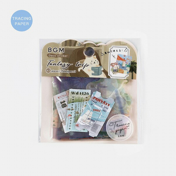 【全期間20%OFF!スーパーSALE11日01:59迄】BGM トレーシングペーパーシール 幻の旅 夢空 精霊 仙郷 リゾート 宇宙 緑野 ネコランド 銀河 15デザインx3枚(45枚) ギフト カード 手帳