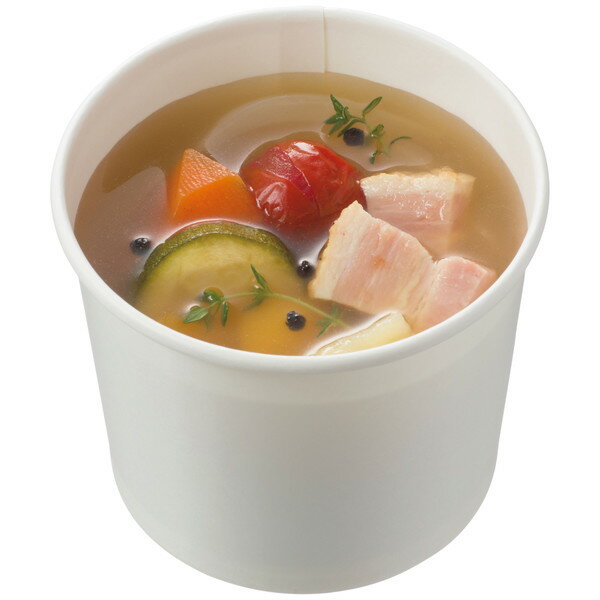 ●汁物もこぼれにくいラミネート加工のカップ。スープ以外に、デザートやサラダにも!●寸法:口径97×高さ59.5mm●材質:バージンパルプ(内外面ポリエチレンラミネート加工)●生産国:日本●単位(入数):1パック(50個入)●コード番号:41563328