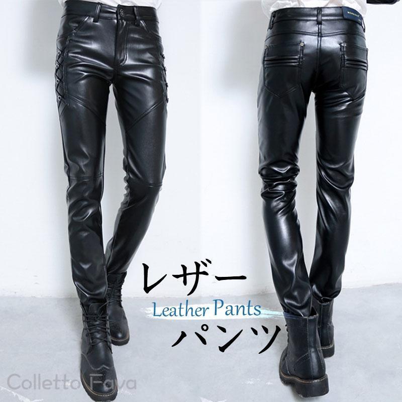 フェイクレザーパンツ 秋冬 メンズパンツ スキニーパンツ ロングパンツ ライダースパンツ バイクパンツ バイカーパンツ 革ズボン