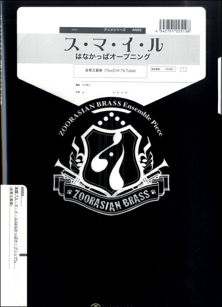 楽譜 【取寄品】【取寄時、納期1週間〜10日】ズーラシアンブラスシリーズ 楽譜『ス・マ・イ・ル(はなかっぱオープニング)』(金管五重奏) 金管五重奏(Tp*2,Hr,Tb,Tuba)【メール便を選択の場合送料無料】