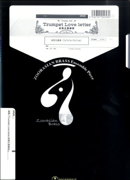 楽譜 【取寄時、納期1週間〜10日】ズーラシアンブラスシリーズ 楽譜『Trumpet Love letter(金管五重奏版)』 金管五重奏(Tp*2−Hr−Tb−Tub)【メール便を選択の場合送料無料】