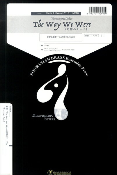 楽譜 【取寄品】【取寄時、納期1週間〜10日】ズーラシアンブラスシリーズ 楽譜『The Way We Were(追憶のテーマ)』(Trumpet Solo) 金管五重奏(Tpソロ)【メール便を選択の場合送料無料】