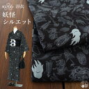 [ 洗える 浴衣 ] 妖怪シルエット(黒/105-337-117-88) ゆかた セオα CEOα セオアルファ 仕立て上がり プレタ 化け物 怪物 妖魔 お化け 魔物 火の玉 唐傘 ろくろ首 猫 狐 アマビエ 輪入道 草履 提灯 シック レトロ 個性 黒 灰色 女性 レディース 婦人用 撫松庵 (fu105)