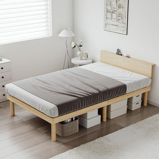 Z-HOMセミダブルベッドベッドフレーム棚付き天然パイン材木製すのこベッド宮棚耐荷重350kgベッド収納高さ27cm単品フレームナチュラル