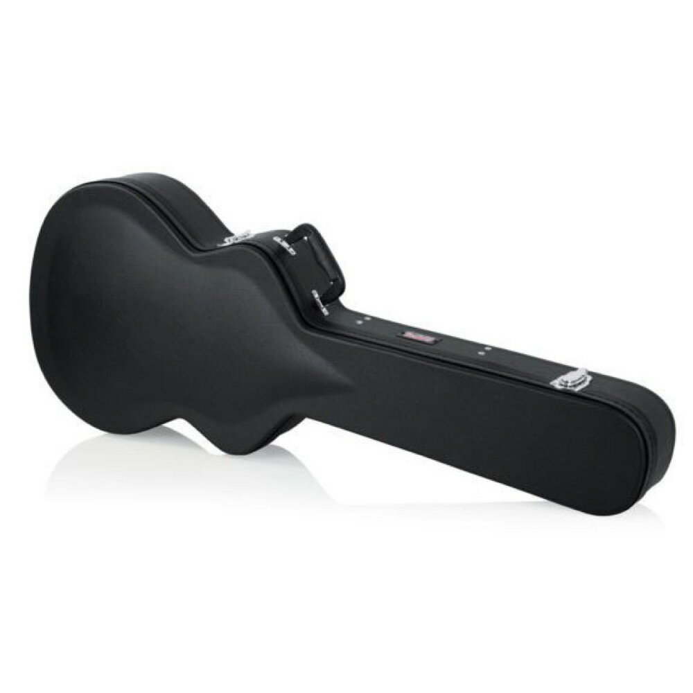 GATOR GWE-335 Hard-Shell Wood ギターハードケース※Casinoなど一部モデルは収納出来ない場合もございますので、商品説明の内寸サイズをご参照下さい。セミホローギター用のGWE-335ハードシェルウッドケースは、軽量で超スリムで、日常使用の小さな衝撃や打撲から保護するように設計されています。黒のTolexPVCでコーティングされた超耐久性の合板は、耐湿性、耐衝撃性の外側バリアを形成し、豪華なファブリックの裏地がセミホローギターをぴったりと保ちます。大きな内部収納コンパートメントは、ストラップやチューナーからピックやカポまで、あらゆるものに適合します。クロームメッキのロック可能なラッチが安全なエンクロージャーを形成し、人間工学に基づいた持ち運び用ハンドルがケースの重量のバランスを完全に取り、ギアを快適にグリップします。 Gator GWE-335ハードシェルウッドケースを使用して、セミホローギターを安全で健全な状態に保ちます。■特徴・超耐久性合板構造(数年に及ぶ使用や酷使への耐性)・人間工学ハンドル(快適なグリップ、楽器の重みを絶妙にバランシング)・広々としたインテリア・アクセサリー・コンパートメント(お気に入りのあらゆるギター・アクセサリーを整理しつつ、付加的なネックサポートを供与)・セミホローギターに合うように設計されています。・ブラックTolex PVC カバリング(耐湿で頑丈なエクステリアを実現)・厚プラッシュ・ライニング(クッション状でギターを衝撃から保護)・クロムプレートのロック可能なラッチ(ケースを固定)内装寸法内寸高さ:4.7インチ(約11.9cm)内寸ボディ部全長:22.6インチ(約57.4cm)内寸ボディ部高さ:4.7インチ(約11.9cm)内寸ボディ下部幅:15.9インチ(約40.4cm)内寸ボディ中部幅:9.8インチ(約24.9cm)内寸ボディ上部幅:11.9インチ(約30.2cm)内寸全長:43.5インチ(約110.5cm)外装寸法ケース外寸全長:45.2インチ(約114.8cm)ケース外寸幅:17.5インチ(約44.5cm)ケース外寸高さ:5.9インチ(約15cm)重さ:約4.02kgModel GWE-335UPC 716408522005Color ブラック