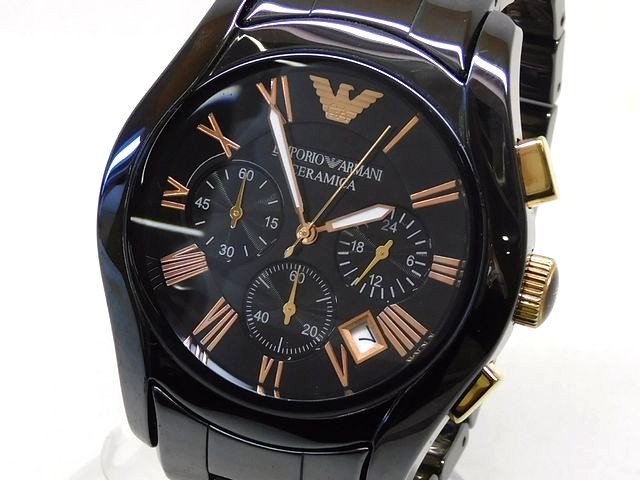 美品 EMPORIO ARMANI エンポリオ・アルマーニ AR-1410 ■ CERAMICA クロノグラフ クオーツ メンズ腕時計 ウォッチ□8B ムニ10