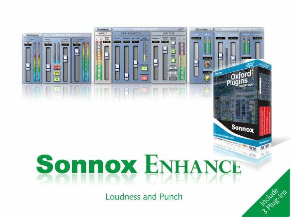 高品質プラグイン「SONNOX」による楽曲の音圧、臨場感を膨らませるエフェクトパッケージ! 多くの方が必至なはずの要注目パックです! 線の細いボーカルの存在感を大きくしたい。 パーカッションのアタック感を調整したい。 ドラム全体をラウドにしたい。 マスターに使えるリミッターも必要。 単にボリュームをあげるのではなく、素材にあわせて存在感を調整可能なOxfordプラグインが、「バンドル」となって特別価格で。 ■収録されるプラグイン ※64bit対応のG5ライセンスです。ユーザー登録後に、無償アップデートでPro Tools 11に対応するAAX Nativeがご利用頂けます。(別途Pace iLok 2が必要です。) * Oxford Limiterインターサンプル・ピークも表示可能なマスタリング・リミッター。 * Oxford Inflator これ以上のレベルは無理、と思われていた素材の音圧を、独自のアルゴリズムで向上させるプラグイン。 * Oxford TransMod 素材のトランジエントを調整することで、アタックを強調したりソフトにする事が可能なプラグイン。 動作環境 Mac OS X 10.5~10.8 (intelCPU) Windows 7 /Vista/XP 32 / 64bit対応 1GB以上の空きメモリ RTAS: Avid Pro Tools 8〜10 (AAXバージョンはPro Tools 10、11にて対応) AU、VST(v2.4)対応ホストアプリケーション iLok2 USB Smart Key(別売)、および接続用のUSBポート×1基 基本的な動作環境は各フォーマット対応ホスト・アプリケーションの動作環境に準じます。 *その他動作環境・システムはご利用のホストアプリケーションに準じます。