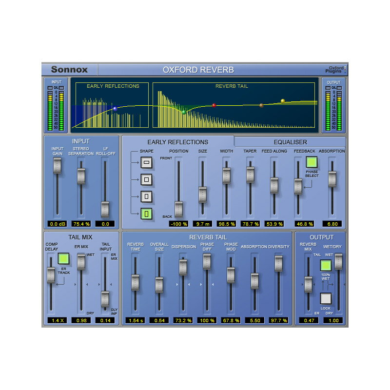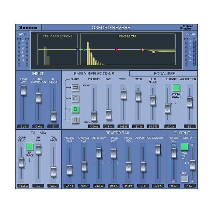 プロのニーズを知り尽くした、透明なリバーブ。【特徴】・高域まで歪みのない透明な音質に定評のある、Sonnox Oxfordクオリティ。・思い描いた響き、空間表現を可能にする柔軟な設計。・アーリー・リフレクション、テイル、EQと、明快な構成。・部屋の形、サイズ、幅、吸収量など、直感的かつ繊細に調整可能なアーリー・リフレクション。・アーリー・リフレクションと連動したタイミング設定、ミックスなども簡単に調整できるテイル。・本格的な5バンドEQ(リバーブ音のみにかかり、ドライ音には影響を与えません)。・音楽、ポストプロダクションの現場ですぐに使える、100種類以上のリアルで、実用的なプリセット。超高域まで歪みのない透明な音質が高く評価されている、Sonnox Oxford製品。Oxford Reverbは、そんなOxford EQ、Oxford Dynamicsユーザーの期待を裏切らない、高品位なリバーブ・プラグインです。リバーブを使い慣れた方なら迷わずに使える、アーリー・リフレクション、テイル、EQという明快な構成。部屋の形、サイズ、壁の素材による吸収量など、直感的なパラメーター。100種類以上の、リアルで実用的なプリセット。Oxford Reverbは、そのすべてに数千万円クラスのコンソールの開発で培われてきた妥協のないクオリティの追求と、プロのニーズを知り尽くした現場感覚が生きています。思い描いた空間表現、響きに近づけたいけど、音が濁ったり、粗くなるものは困る。ほとんどドライに聴こえるけど、微妙なアンビエンス感のあるミックスが作りたい。豊かなホールのテクスチャーを、音像をぼやけさせずに加えたい。映像関連の仕事では、直感的に使えるものでないと困るが、クオリティの低いリバーブは大規模なシアターでの再生時にすぐバレてしまう。必要以上にCPUに負荷を与えず、HD/HD Accel上で安定して使えるリバーブが欲しい。Oxford Reverbは、そんなプロ・ユーザーの定番リバーブとして、欠かせな存在になることでしょう。JANコード:4533940017570