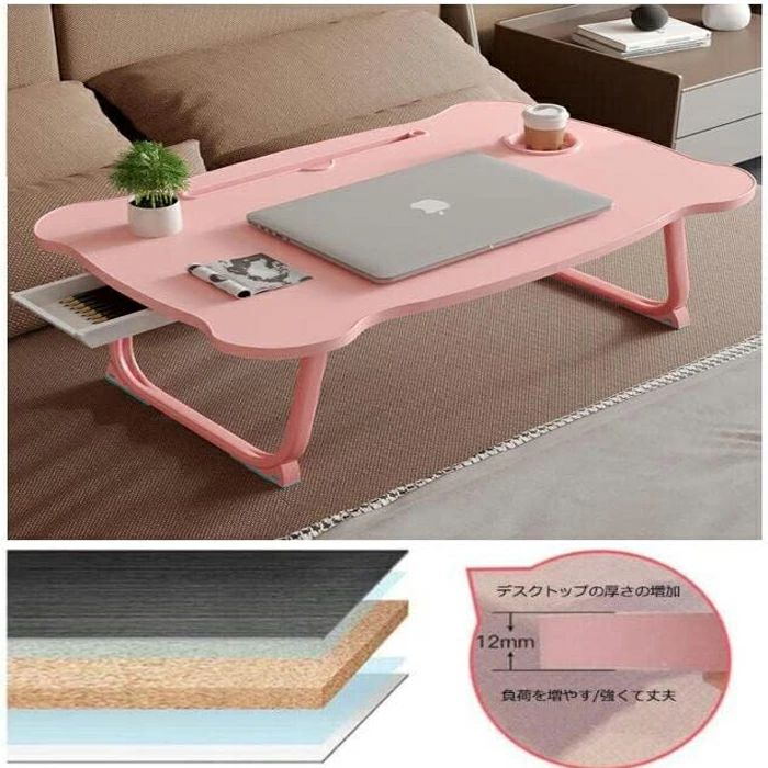 折りたたみテーブル 幼児勉強机 子供 テーブル ローテーブル ベッドテーブル ミニテーブル 折り畳み ベッド 机 小さい机 パソコンデスク ラップデスク 引き出し/携帯電話・タブレットホルダー/カップホルダー付き ソファテーブル インストールは不要です 軽量 便利な収納