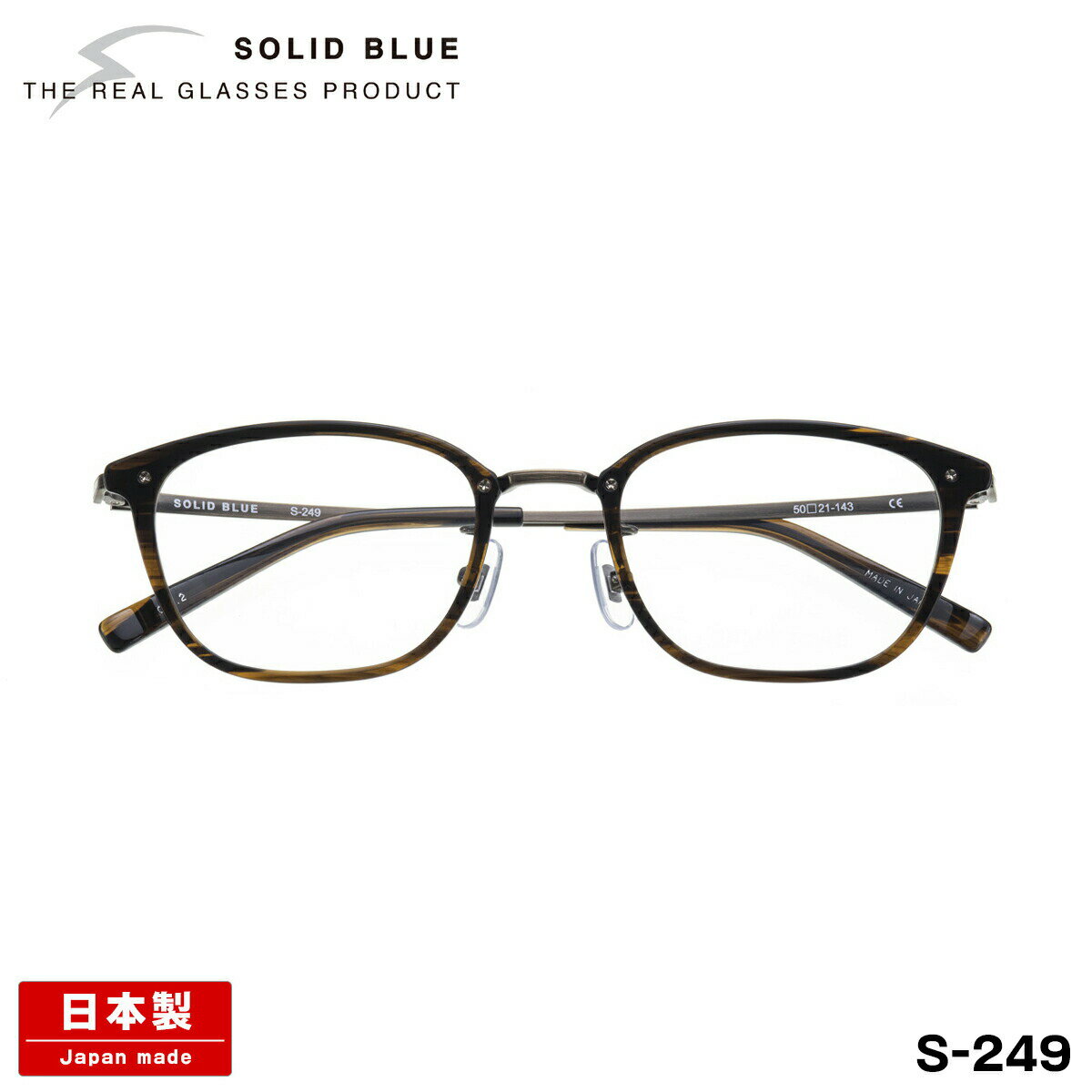 ソリッドブルー メガネ S-249 5色 50mm SOLID BLUE 日本製 鯖江 フレーム アセテート チタン 男性 メンズ