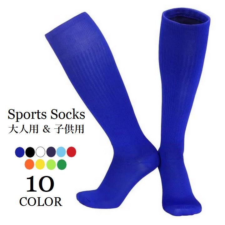 カラバリ豊富なロング丈のスポーツソックス。 サッカーはもちろん他の競技でも◎ 大人用と子供用の2タイプからお選び頂けます♪ 【サイズについて】 画像をご参照ください。 【カラーについて】 生産ロットにより柄の出方や色の濃淡が異なる場合がございます。 お使いのモニターや撮影時の光の加減などにより 画像と実際の商品のカラーが異なる場合もございます。 予告なしにカラーやデザインなどの変更がある場合もございます。 【素材について】 65%綿35%ポリエステル 【補足説明】 ※色落ちする場合がございます。手洗い後、ご着用くださいますようお願い致します。