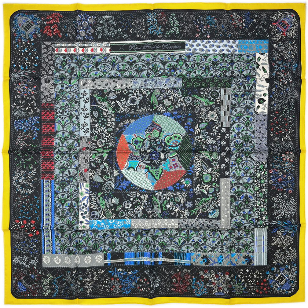 新品 エルメス スカーフ HERMES ソルド カレ ツイル シルク100% 90CMS PIQUE FLEURI DE PROVENCE 花 植物 ブラック イエロー 黒 27415