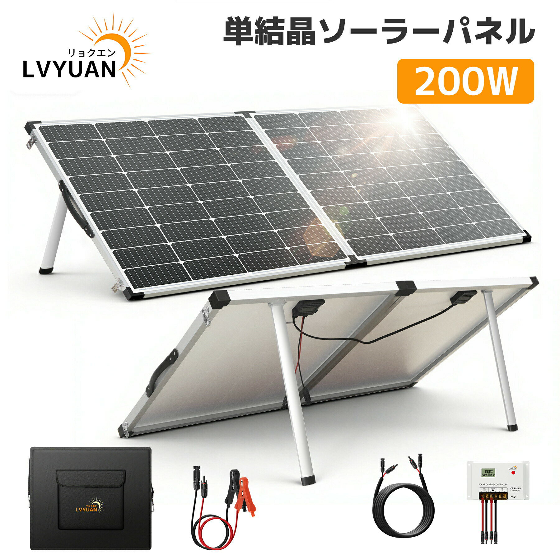 【Super SALE限定20,398円 12/4 20:00~】【ポータブル電源・12Vバッテリー充電対応】LVYUAN 200W 単結晶 ソーラーパネルセット 折りたたみ式 20Aソーラーチャージャー 太陽光パネル 太陽光チャージ 高変換効率 22.5% 車中泊・キャンプ・災害対策