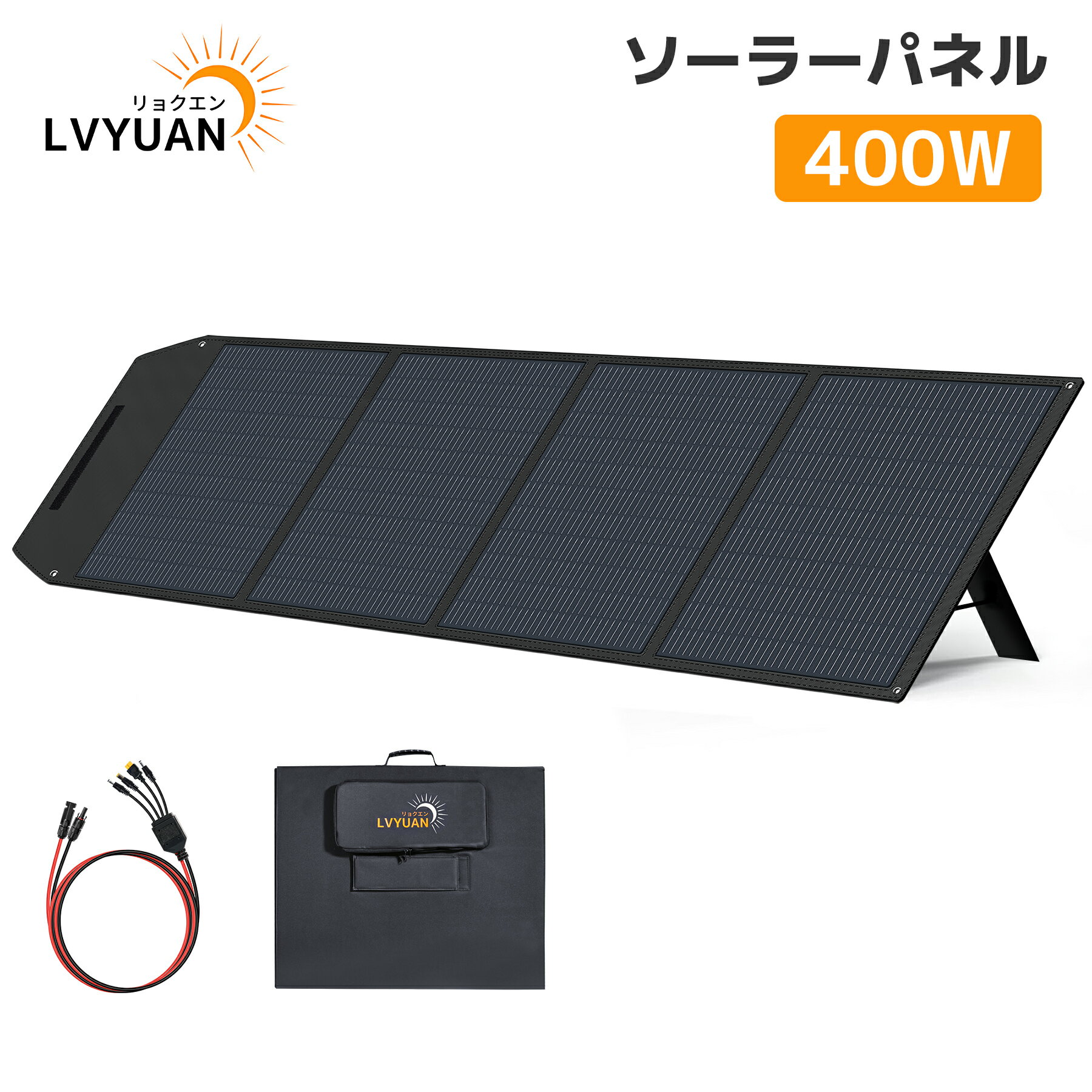 【Super SALE限定36,548円 12/4 20:00~】LVYUAN(リョクエン)ソーラーパネル 400W/500W ポータブル電源用 折りたたみ 高電圧仕様 ソーラーチャージャー 太陽光パネル 直列/並列接続可 22.5%高交換効率 PET 防災用/停電対策CSUL-400W