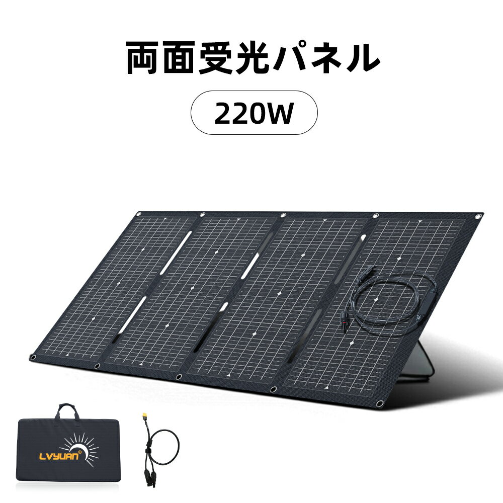 【クーポン適用で31,448円】LVYUAN【正規品】ソーラーパネル 220W 200W 両面受光型 折りたたみ式 IP68 防水防塵 高出力 (220W 23.6V 11A) 変換効率23% ポータブル電源充電器 ソーラー充電器 太陽光発電 薄型ソーラーチャージャー 太陽光パネル キャンプ アウトドア 防水