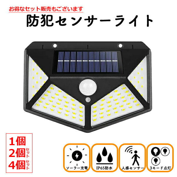 センサーライト 1個 2個 4個セット 屋外 ソーラーライト LED 人感センサー 広範囲 100LED 1200ルーメン 爆光 明るい ライト ポーチライト 玄関 駐車場 庭 防犯 照明 防水規格 防雨型 太陽光充電 エコ レビュー特典あり 本州一律送料無料 NH3-select
