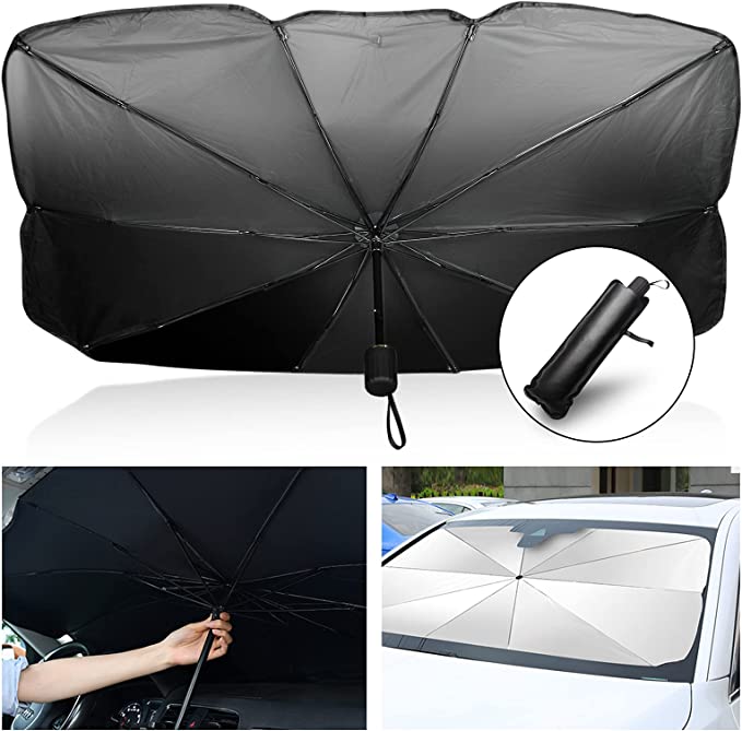 車用 サンシェード 車 フロント 傘 くるま用 パラソル 軽自動車 汎用 日よけ 折りたたみ 収納便利 遮光 遮熱 カーフロントガラスカバー プライバシー保護 太陽光 UV 紫外線カット 暑さ対策 収納ポーチ付き