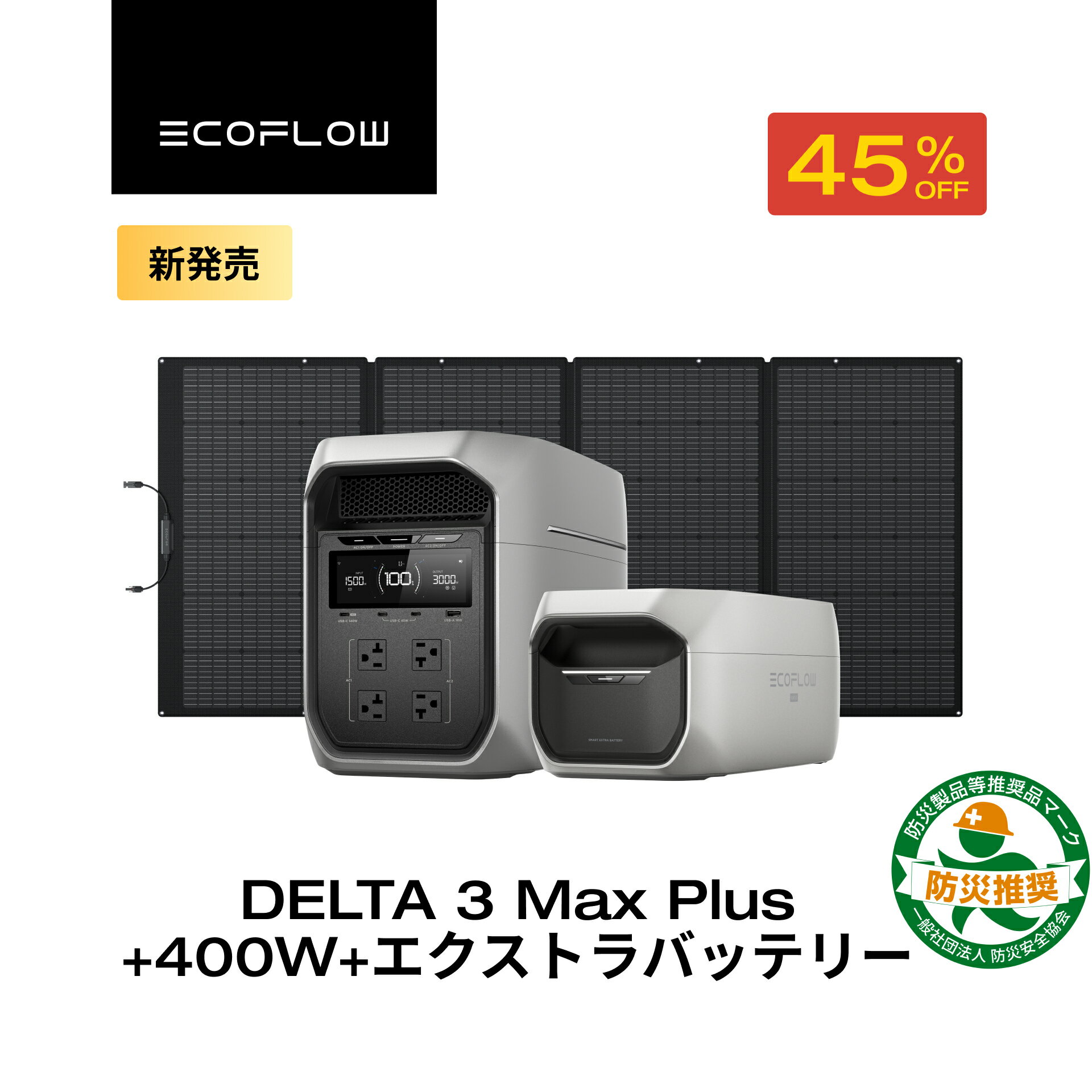 【クーポン利用で207,064円 12/1迄】EcoFlow DELTA 3 Max Plus+400Wソーラーパネル セット ポータブル電源 長寿命 大容量 5年保証 蓄電池 発電機 バッテリー 太陽光発電 キャンプ 停電 車中泊 エコフロー