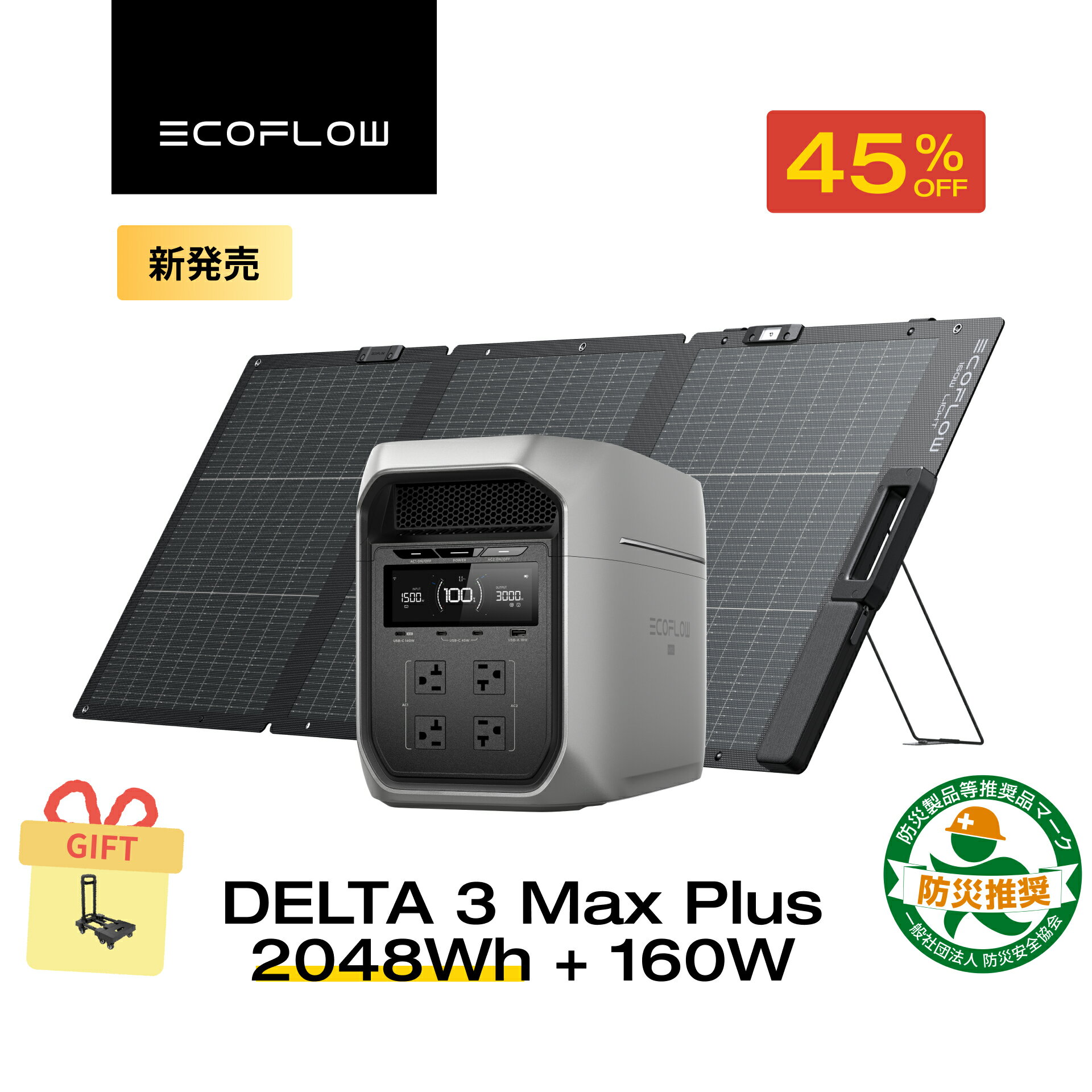 【クーポン利用で161,689円 12/1迄】EcoFlow DELTA 3 Max Plus+160W 軽量両面ソーラーパネル セット ポータブル電源 長寿命 大容量 5年保証 蓄電池 発電機 バッテリー 太陽光発電 キャンプ 停電 車中泊 エコフロー