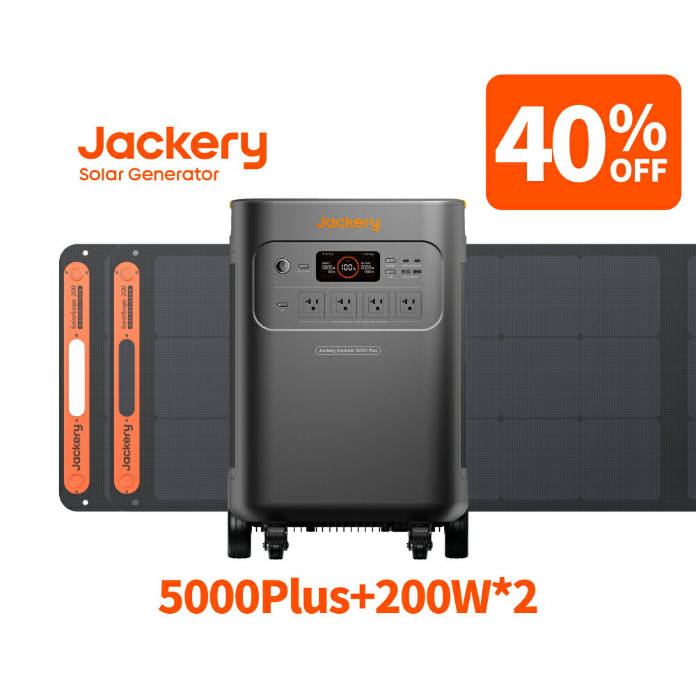 【クーポン利用で581,400円 11/30 00:00から】Jackery Solar Generator 5000 Plus 5040Wh 200W*2 ポータブル電源 ソーラーパネル セット 定格6000W 大容量 バッテリー 防災 家庭用 アウトドア用 UPS機能 アプリ遠隔操作 優れた静音性 雷サージ保護機能付き ジャクリ