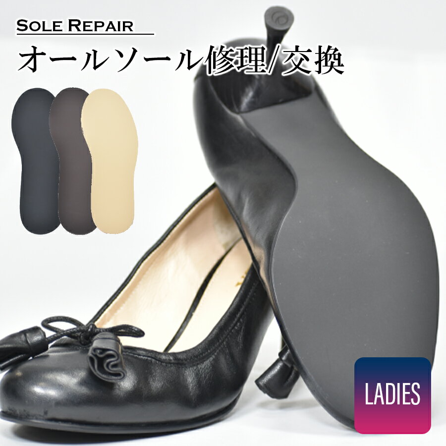 [往復送料無料]靴修理 オールソール交換 婦人靴 職人作業 |革靴 靴底 張り替え シューズ リペア革 ローファー ビジネスシューズ ゴム ヒール プレーンソール ヒール交換 手入れ 剥がれ 補修 補強 滑り止め