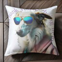 サングラス ボルゾイ ローブ クッションカバー 45×45cm アニマル柄 おしゃれ 可愛い クッション本体付き 正方形 犬ファン