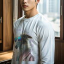 長袖Tシャツ 人間用 メンズ 秋春夏 プリント レジャー アウトドア カジュアル かわいい 犬ファン サングラス ボルゾイ ローブ