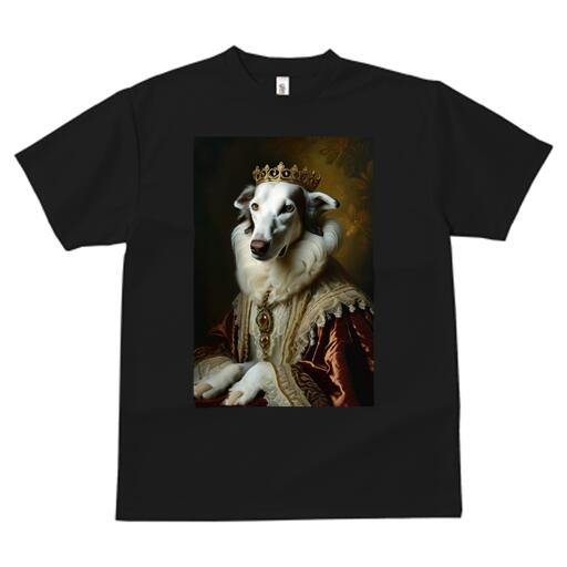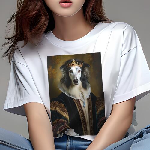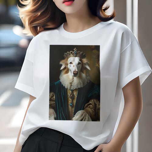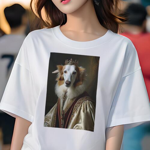 ボルゾイ Tシャツ レディース 犬ファン 半袖 春夏 犬柄 プリント カジュアル かわいい 人間用 個性派 ここだけのデザイン 面白 王冠 ボルゾイ ローブ 肖像画