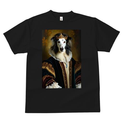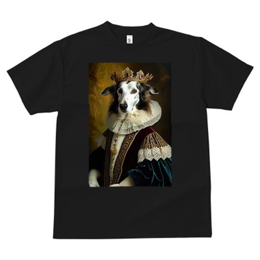 ボルゾイ Tシャツ メンズ キッズ 犬ファン 半袖 春夏 犬柄 プリント カジュアル かわいい 人間用 個性派 ここだけのデザイン 面白 王冠 ボルゾイ ローブ 肖像画 ルネサンス