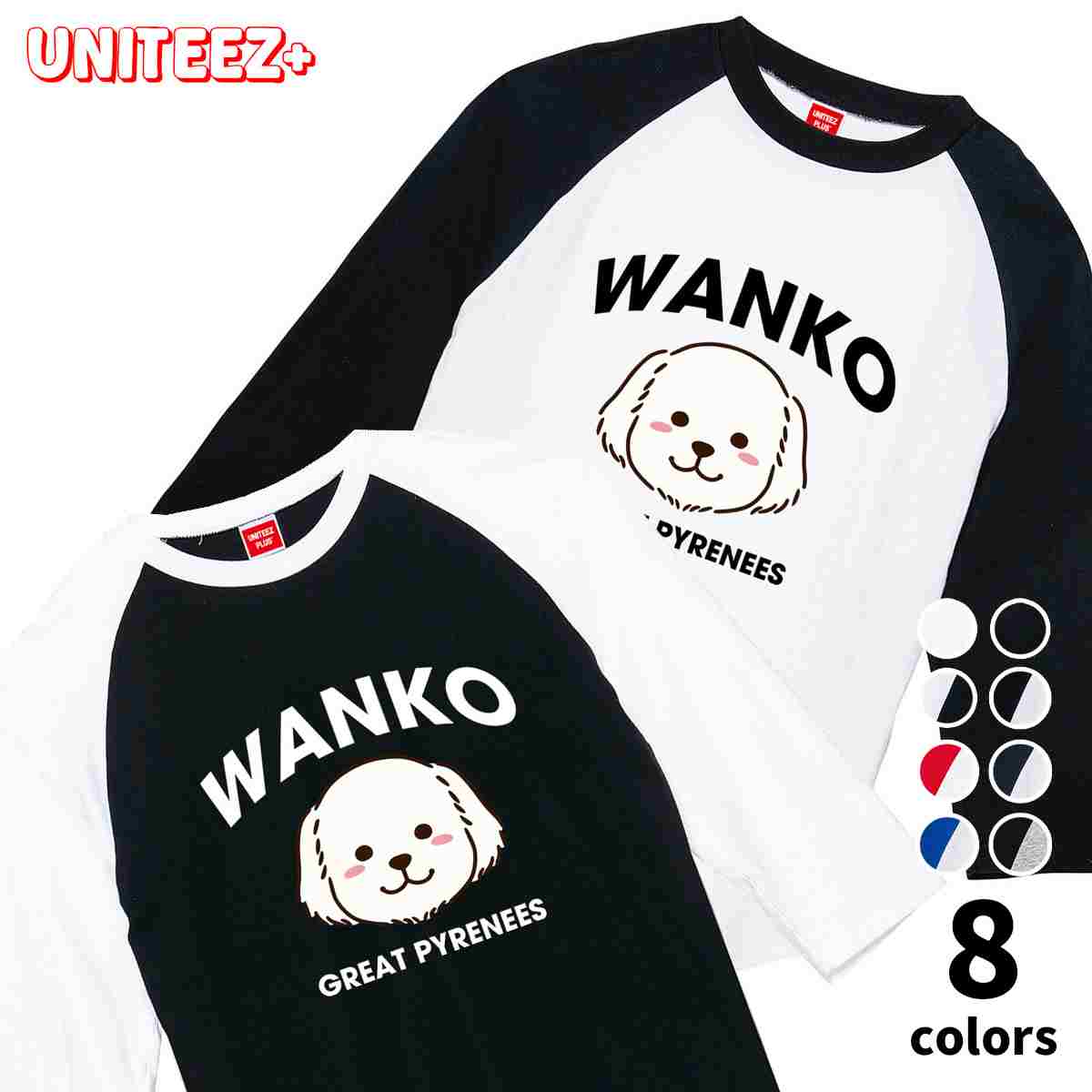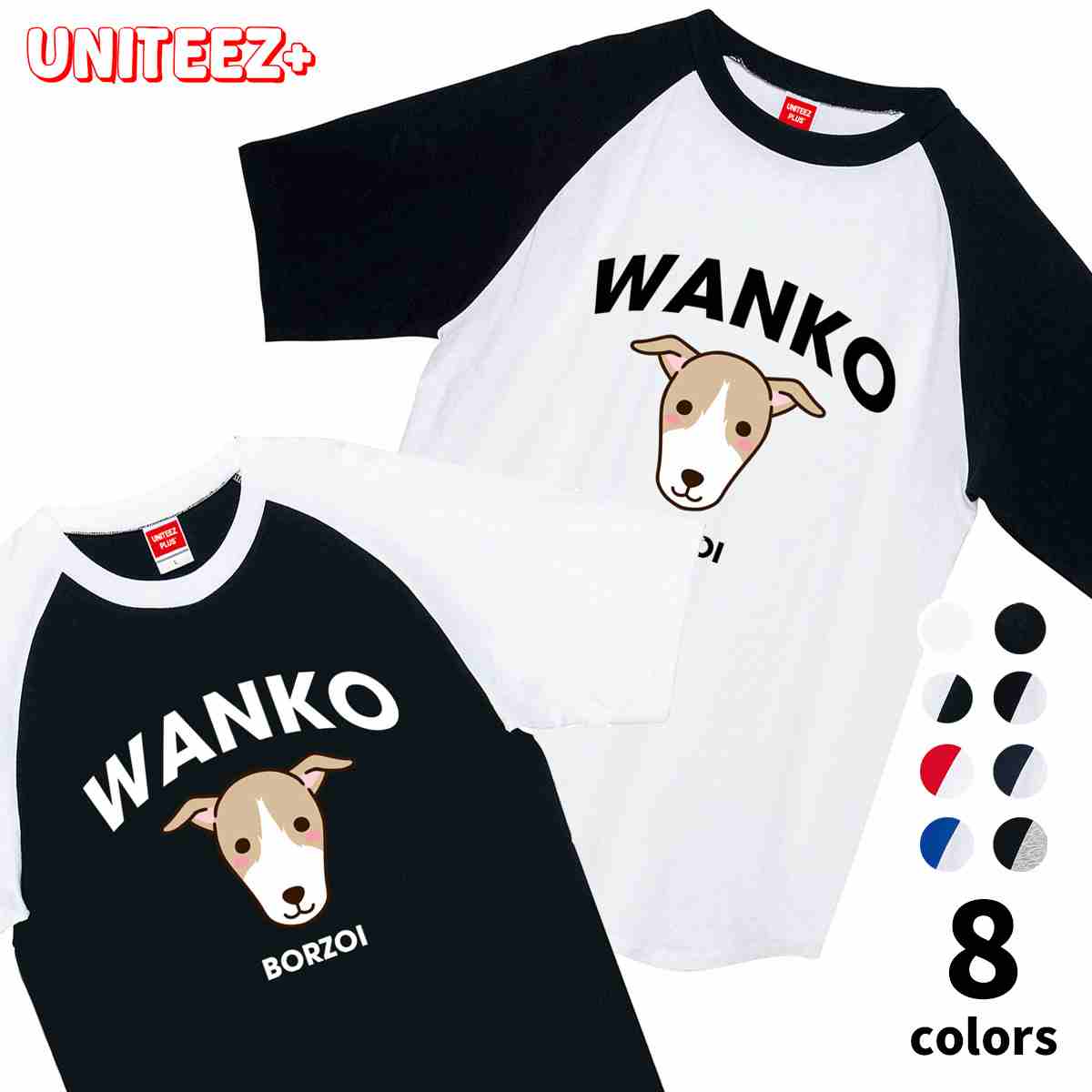 Tシャツ ラグラン七分丈 WANKO ワンコ ボルゾイ ロゴ 犬好き 犬 いぬ イヌ ドッグ メンズ ユニセックス プレゼント おもしろ グッズ ギフト