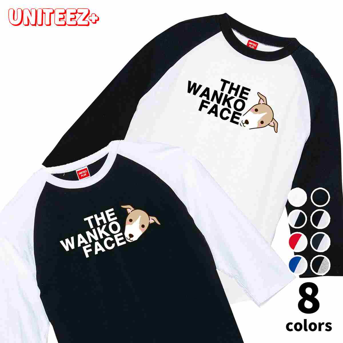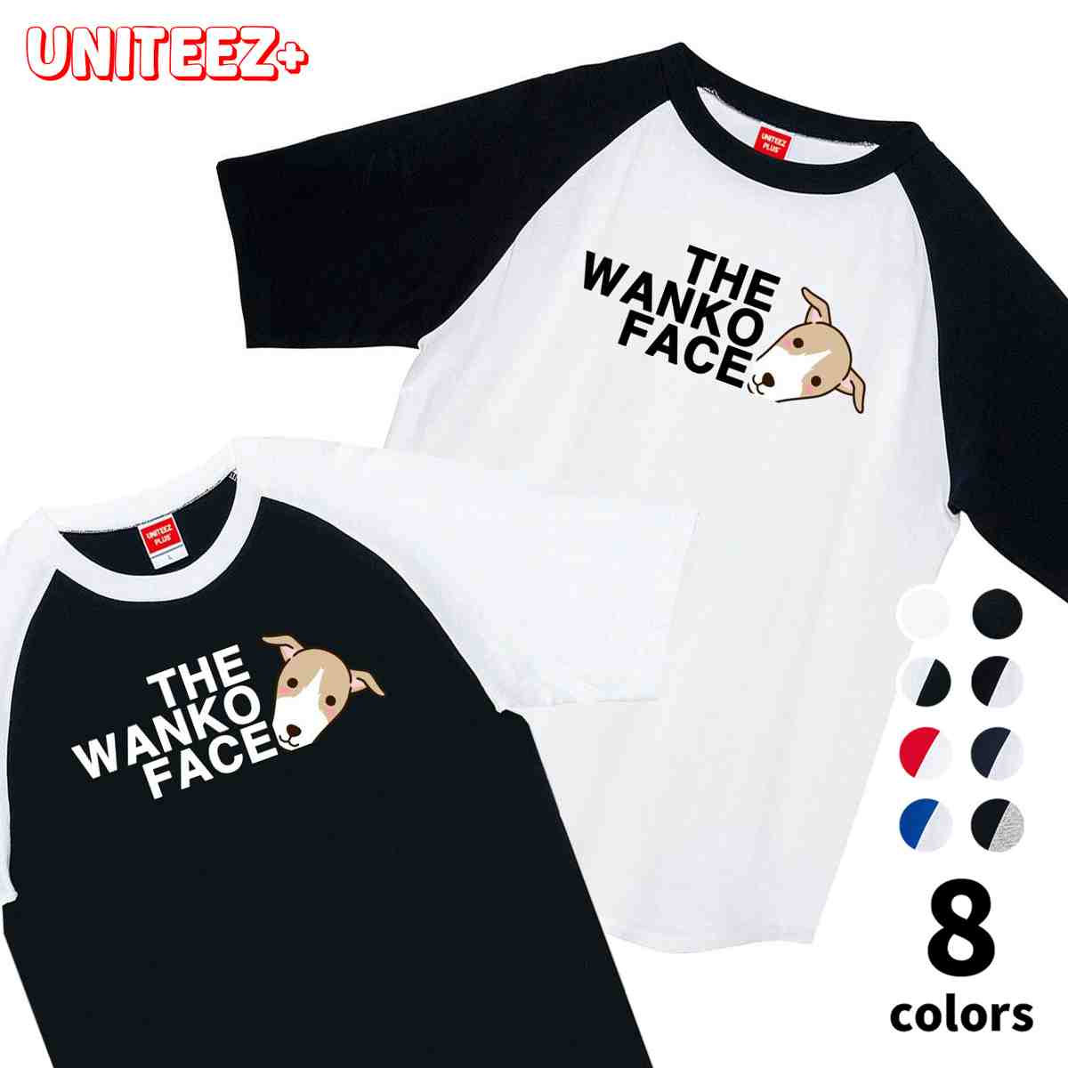 Tシャツ ラグラン半袖 THE WANKO FACE ザ ワンコ フェイス ボルゾイ ロゴ 犬好き 犬 いぬ イヌ ドッグ メンズ ユニセックス プレゼント おもしろ グッズ ギフト