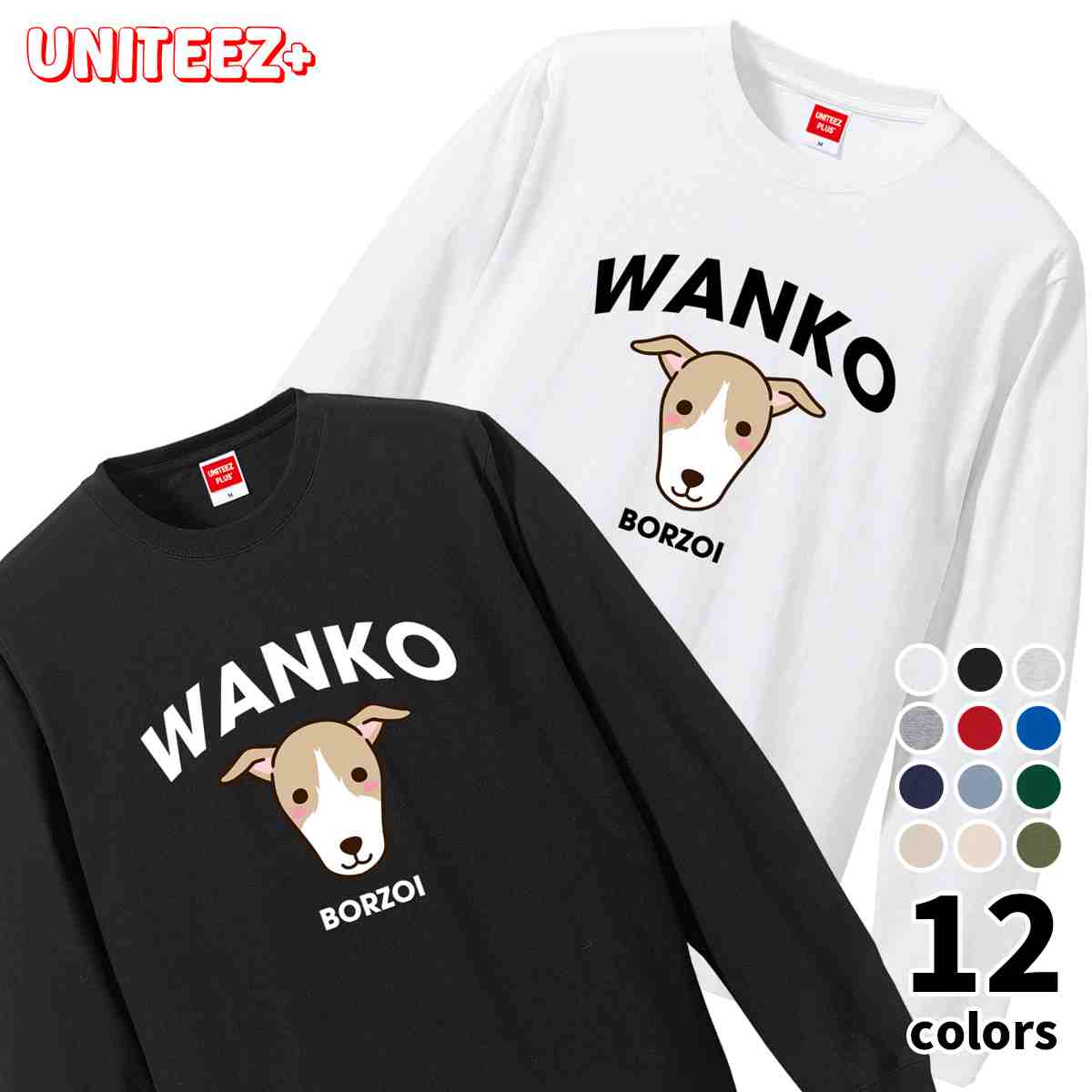 Tシャツ 長袖 WANKO ワンコ ボルゾイ ロゴ 犬好き 犬 いぬ イヌ ドッグ メンズ ユニセックス プレゼント おもしろ グッズ ギフト