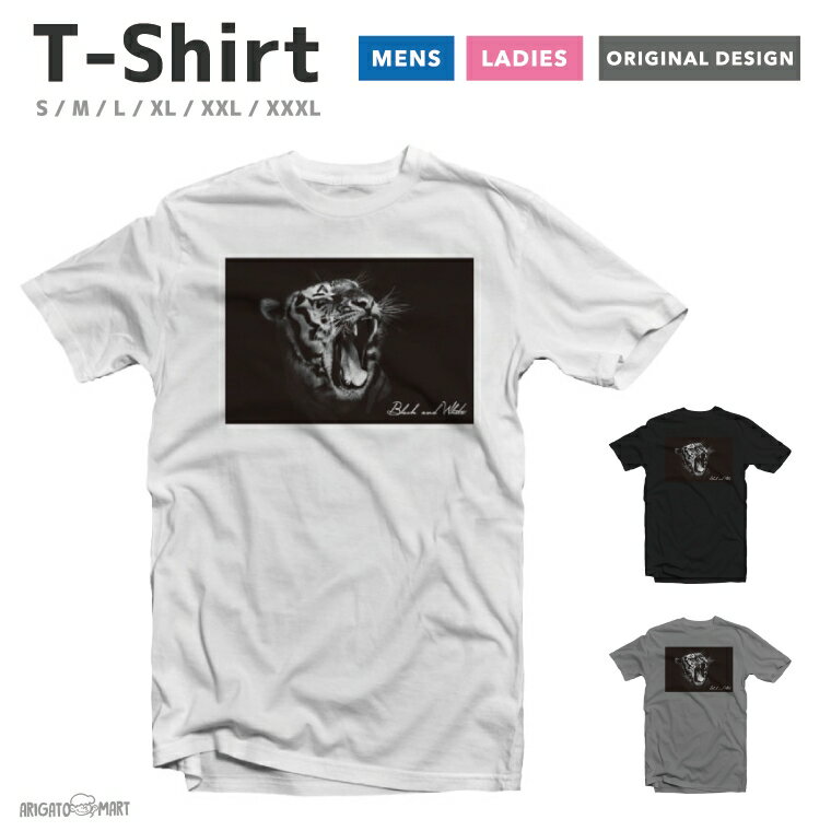 Tシャツ レディース 半袖 おしゃれ プリント ブラック ホワイト クルーネック 綿100% カジュアル レディースファッション 5.6オンス プリントtシャツ 虎 トラ Tiger モノクロ ストリート