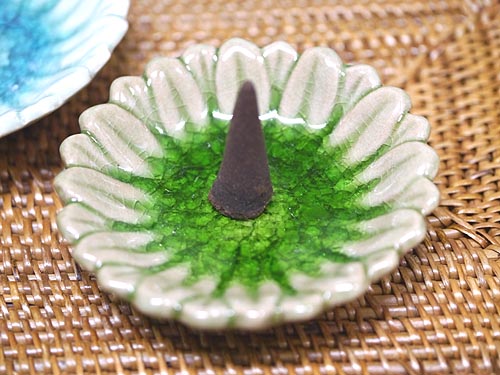 お香 タイセラドン フラワー型香皿グリーン インド香コーンに インセンスホルダー