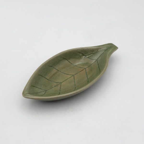 英国 ヴィンテージ タイセラドン 緑色 陶器 プレート 葉っぱ型 リーフ 皿 食器 雑貨 小物入れ アクセサリー IZ82984T