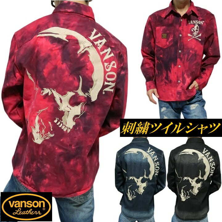 VANSON バンソン ヴァンソン ウエスタンシャツ ツイルシャツ ビッグ/スカル/ドクロ/髑髏 刺繍 NVSL-2504 ブラック/インディゴ/タイダイレッド サイズM/サイズL/サイズXL/サイズXXL ネバーマインド