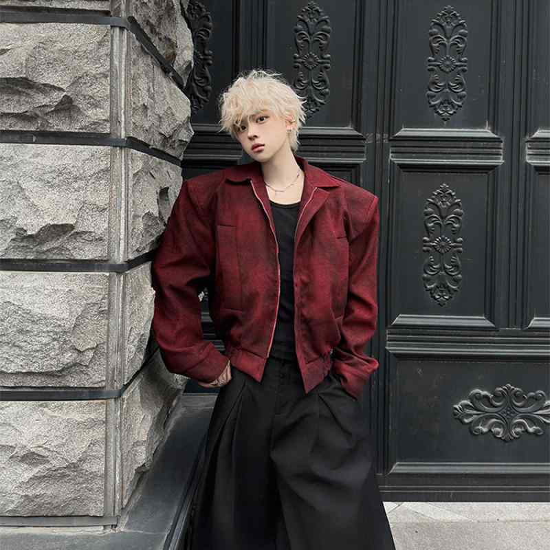 春 コーデ メンズ 用 服 シンプル ファッション オシャレ 大人 かっこいい 紳士服 タイダイ柄 ジャケット コート タイダイ レッド ハイエンド 春秋 カジュアル 通勤スタイル 重ね着コーデ ゆったりシルエット 軽アウター