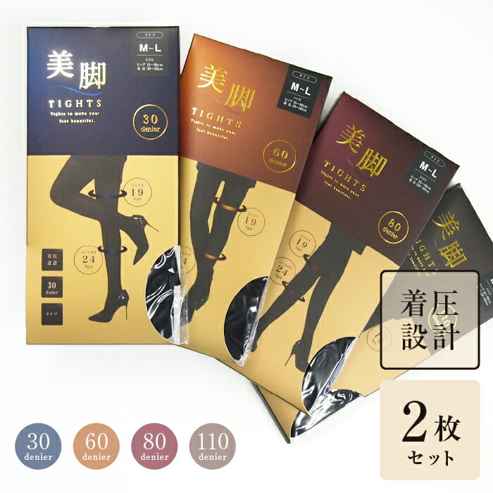 美脚 着圧 タイツ 2足セット【ポスト投函配送無料】 段階着圧設計 無地 ブラック 30 60 80 110デニール レディースアイテム グラト