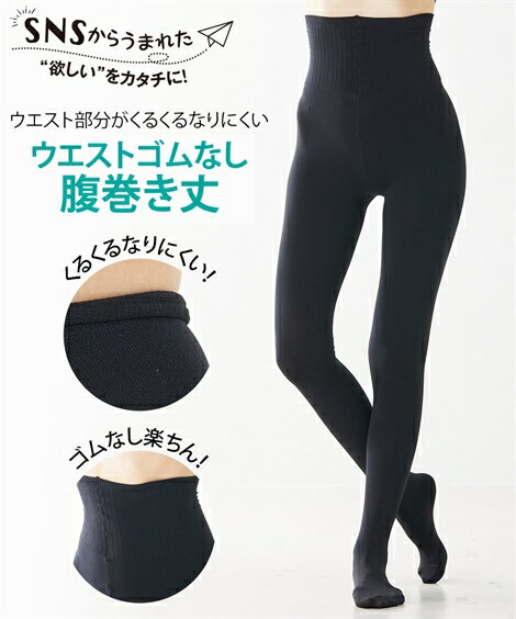 ストッキング・タイツ ニッセン SNSの声から生まれた ウエストゴムなし 腹巻丈 80デニール タイツ 女性 レディース お腹 楽 防寒 カジュアル 黒 秋 冬用 春