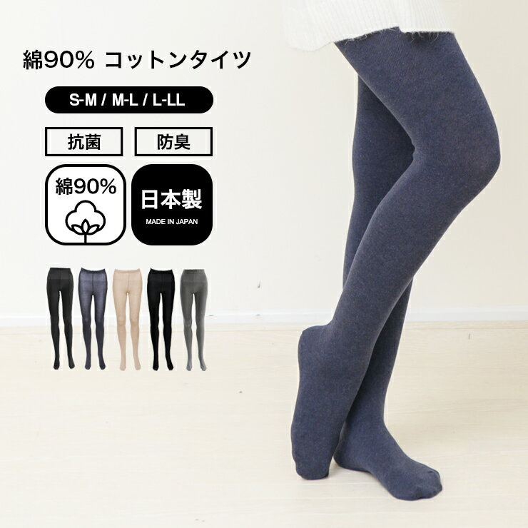日本製 綿90% レディース タイツ コットンタイツ 綿タイツ シンプル 無地 黒 ブラック 抗菌 防臭 綿 毛玉になりにくい マチ付き ゆったり おしゃれ あたたかい あったか 大人 ファッション カジュアル 洗える made in japan 20代 30代 40代 50代 60代 春 秋 冬 S M L LL XL