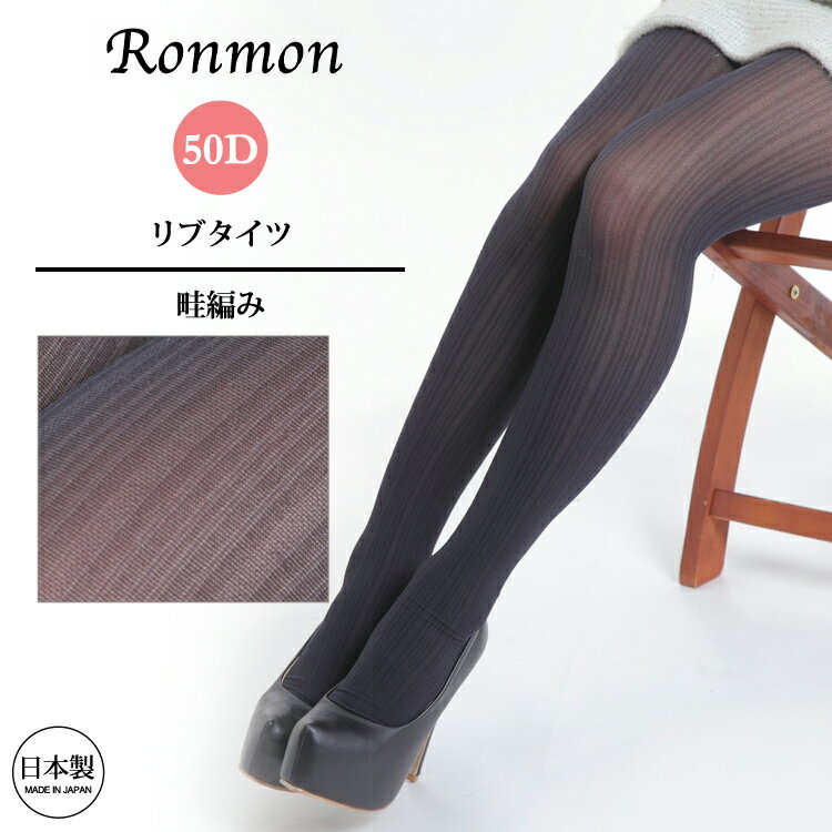 日本製 タイツ レディース リブタイツ 50デニール 畦編み ナイロン リブ タイツ おしゃれ カジュアル シンプル ナチュラル かわいい レッグウェア 足が綺麗に見える 足が長く見える メイドインジャパン made in japan ブラック 黒 黒タイツ M-L 春 秋 冬 送料無料