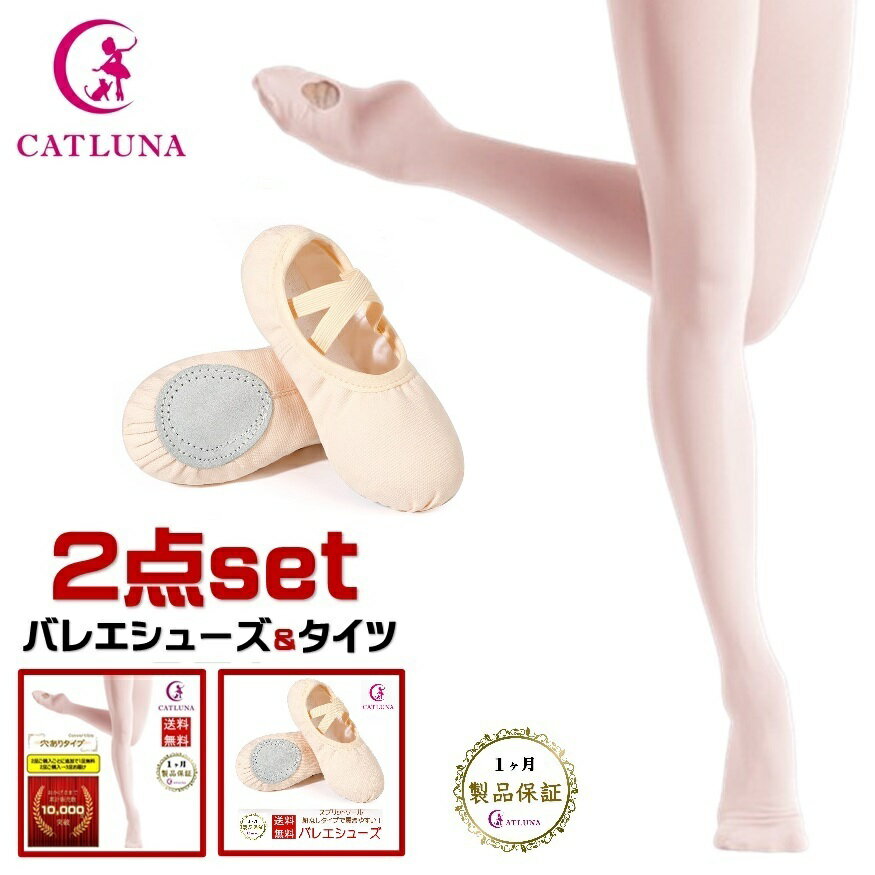 【タイツ&シューズセット】 バレエ シューズ バレエ タイツ 穴あき + バレエシューズ ピンク 子供 キッズ 大人 レディース バレエ用品 練習用 伸縮 丈夫 ストレッチ セット コンバーチブル ヨーロピアン ピンク 60D 穴あり メール便