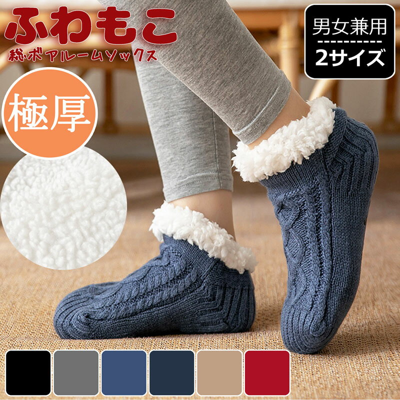 送料無料 極厚 裏ボア ルームソックス 暖か 裏起毛靴下 裏起毛ソックス ルームシューズ ルームブーツ 部屋着 タイツ レギンス 下着 裏ファー ふわふわ あったか 男女兼用 ニット モノトーン 冬 暖かい靴下 室内 くつした