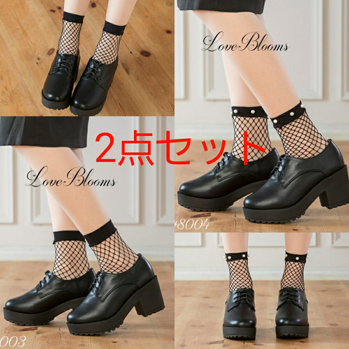 組み合わせを選べる 2点セット 網ソックス&パール付き網ソックス 黒 ブラック 網タイツ レディース 靴下 量産型 地雷系 ゆめかわいい 姫系 ゴスロリ ロリータ 厚底 厚底シューズ
