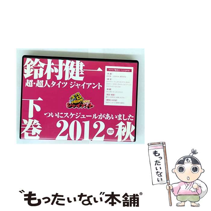 【中古】DVD「鈴村健一の超・超人タイツ ジャイアント~ついにスケジュールがあいました 2012秋~」下巻【メーカー名】ビデオメーカー【メーカー型番】【ブランド名】【商品説明】DVD「鈴村健一の超・超人タイツ ジャイアント~ついにスケジュールがあいました 2012秋~」下巻当店では初期不良に限り、商品到着から7日間は返品を 受付けております。他モールとの併売品の為、完売の際はご連絡致しますのでご了承ください。中古品の商品タイトルに「限定」「初回」「保証」などの表記がありましても、特典・付属品・保証等は付いておりません。掲載と付属品が異なる場合は確認のご連絡をさせていただきます。ご注文からお届けまで1、ご注文⇒ご注文は24時間受け付けております。2、注文確認⇒ご注文後、当店から注文確認メールを送信します。3、お届けまで3〜10営業日程度とお考えください。4、入金確認⇒前払い決済をご選択の場合、ご入金確認後、配送手配を致します。5、出荷⇒配送準備が整い次第、出荷致します。配送業者、追跡番号等の詳細をメール送信致します。6、到着⇒出荷後、1〜3日後に商品が到着します。 ※離島、北海道、九州、沖縄は遅れる場合がございます。予めご了承下さい。お電話でのお問合せは少人数で運営の為受け付けておりませんので、メールにてお問合せお願い致します。営業時間 月〜金 11:00〜17:00お客様都合によるご注文後のキャンセル・返品はお受けしておりませんのでご了承ください。