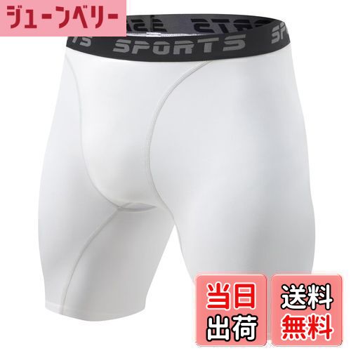 【送料無料】[THREEGUN] コンプレッションショーツ メンズ スポーツ ショート タイツ 着圧パンツ スパッツ パワーストレッチ ランニング アンダーパンツ 冷感 通気 吸湿 速乾 色:ホワイト、サイズ:3XL