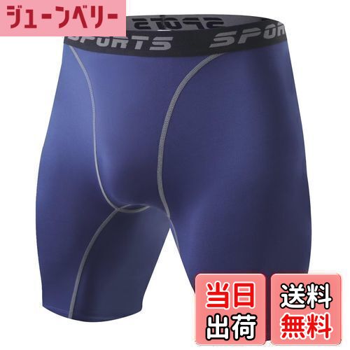 【送料無料】[THREEGUN] コンプレッションショーツ メンズ スポーツ ショート タイツ 着圧パンツ スパッツ パワーストレッチ ランニング アンダーパンツ 冷感 通気 吸湿 速乾 色:ネイビー、サイズ:3XL