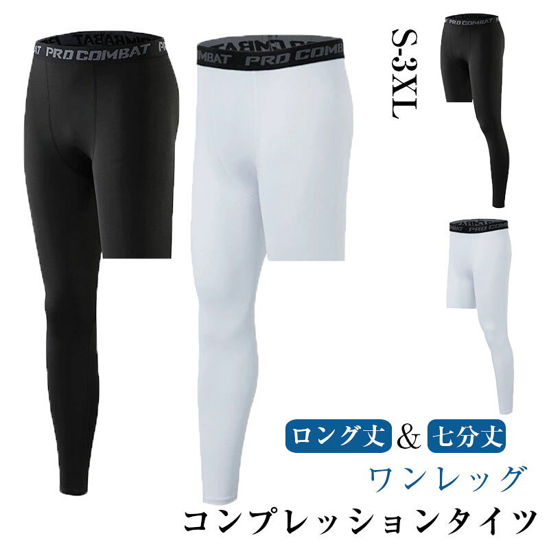 ワンレッグ スポーツタイツ メンズ 七分丈 ロング丈 コンプレッションタイツ 2type ロングタイツ スポーツ 着圧タイツ ストレッチ 速乾 アンダーウェア スポーツレギンス トレーニング ランニングタイツ スポーツ練習 ゴルフ 野球 ブラック ホワイト 白 S M L XL 2XL 3XL