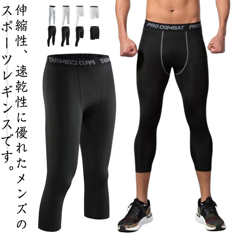 スポーツタイツ 五分丈 七分丈 メンズ コンプレッションタイツ ワンレッグ ストレッチ 速乾 スポーツ レギンス スパッツ 男性用 アンダーウェア スポーツレギンス ランニング アウトドア トレーニング スポーツ 練習用 着圧タイツ 白 黒 ホワイト ブラック S-3XL